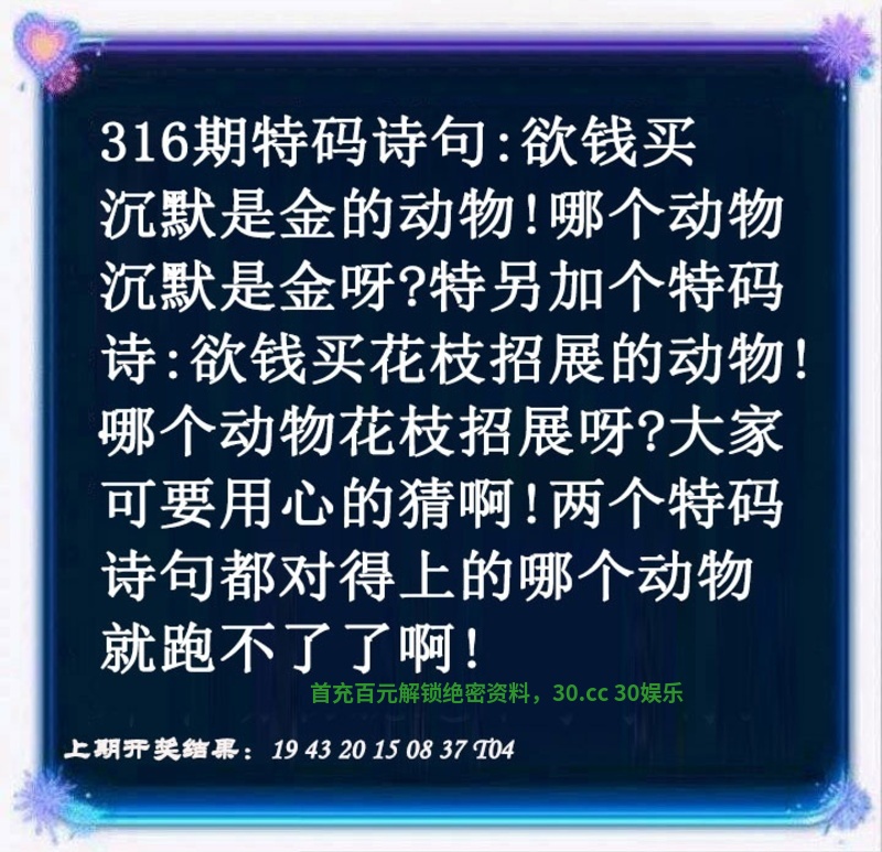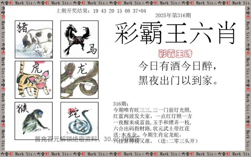 315期: 绝杀三肖╠龙兔马╣开:虎04准